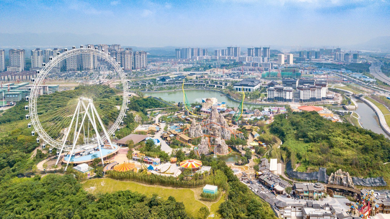 近日,中建二局西南公司承建的西南地区首个大型山地开放式主题乐园——重庆融创文旅城项目竣工并试营业。(周子力、李臣森)