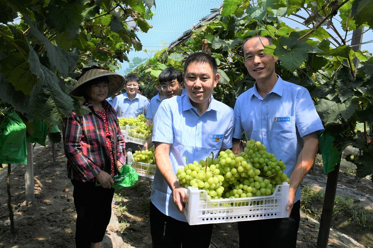 ③近日,中建七局海盐医院项目部走进贫困果农的葡萄园,购买因疫情影响滞销的葡萄,为青年员工上了一堂互帮互助实践课。(赵孟念)