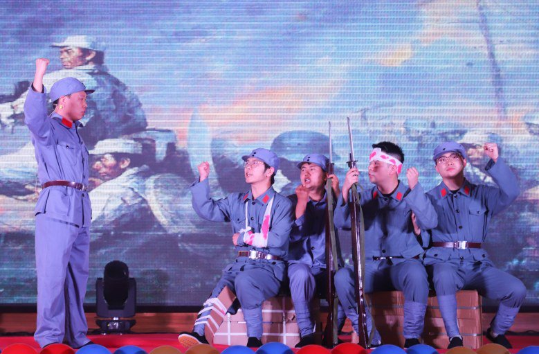 4月29日,中建西勘院青年以情景剧方式演绎百年党史,回顾党的光辉奋斗史,感悟伟大历程,凝聚奋进力量。(曾梓莘)