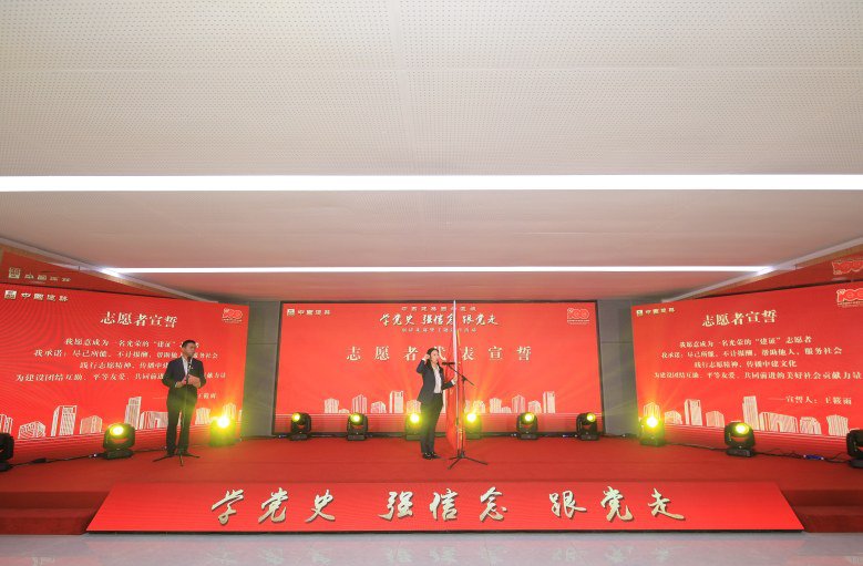 中建四局100 余名青年与易地扶贫搬迁羊城中学项目900余名师生共同开展“我为群众办实事,党史学习进校园”活动,共同学习青年革命烈士事迹。