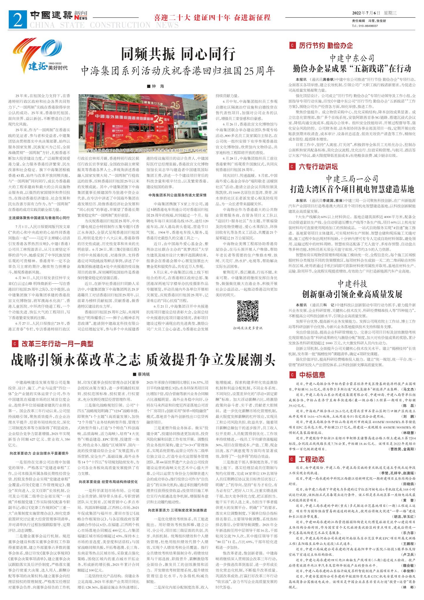 惟改革者进,惟创新者强。中建海峡将继续深入贯彻国企改革三年行动,进一步推进改革到基层、进一步形成长效化常态化机制,不断提升改革质量、巩固改革成效,打赢打好改革三年行动“收官战”,奋力书写企业高质量发展的时代答卷。