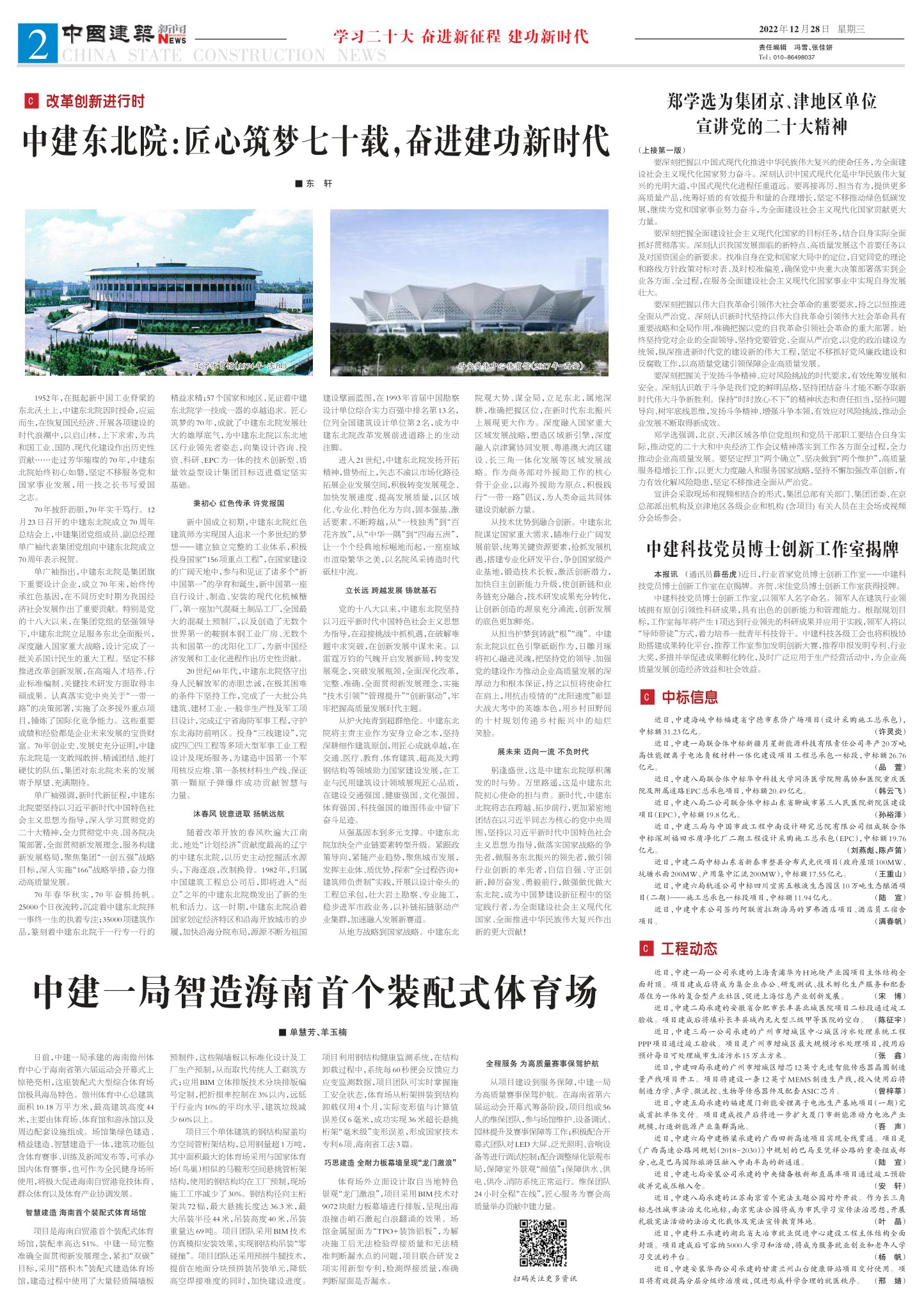 日前,中建一局承建的海南儋州体育中心于海南省第六届运动会开幕式上惊艳亮相,这座装配式大型综合体育场馆极具海岛特色。儋州体育中心总建筑面积 10.18 万平方米,最高建筑高度 44米,主要由体育场、体育馆和游泳馆以及周边配套设施组成。场馆集绿色建造、精益建造、智慧建造于一体,建筑功能包含体育赛事、训练及新闻发布等,可承办国内体育赛事,也可作为全民健身场所使用,将极大促进海南自贸港竞技体育、群众体育以及体育产业协调发展。