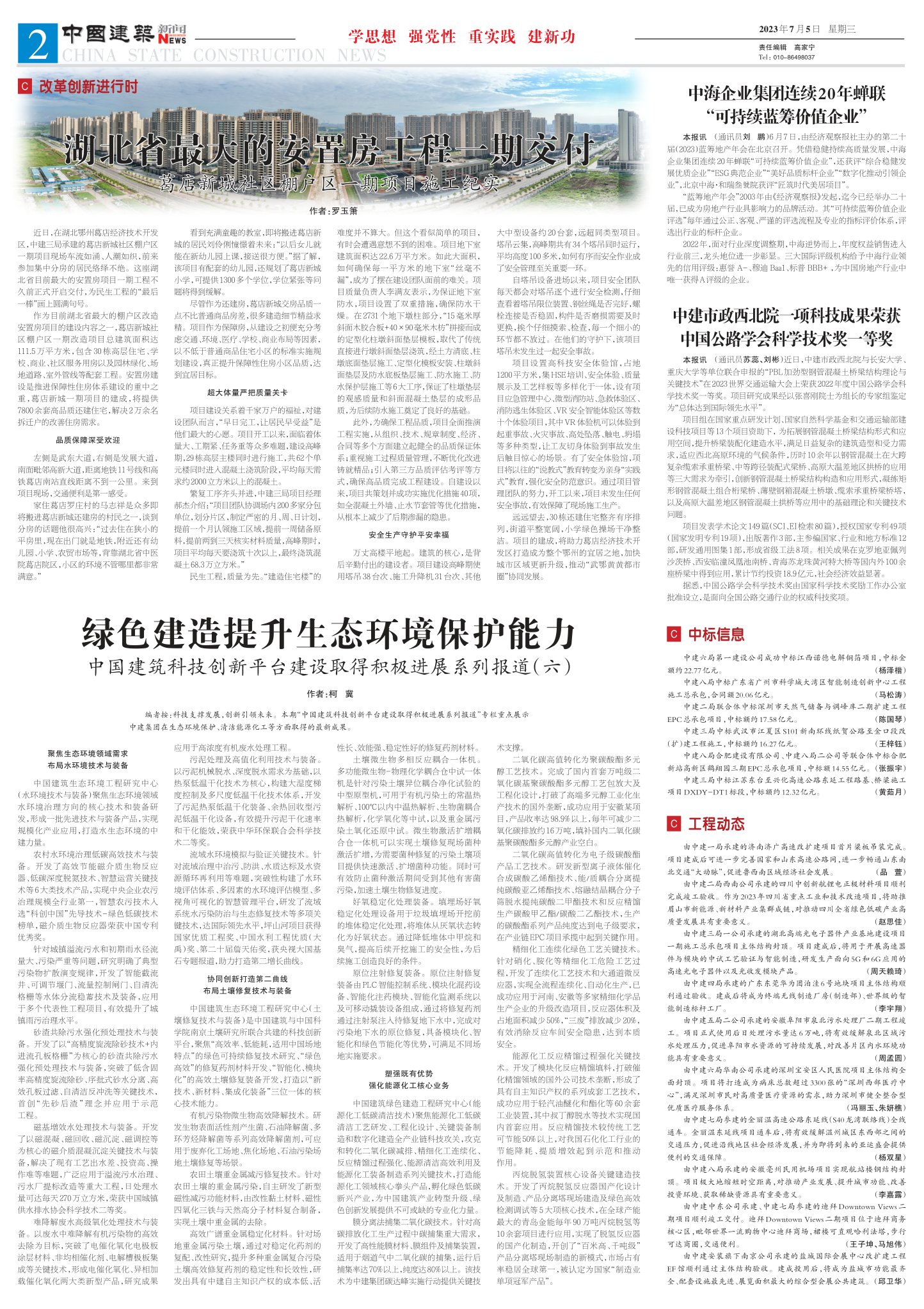 编者按:科技支撑发展,创新引领未来。本期“中国建筑科技创新平台建设取得积极进展系列报道”专栏重点展示中建集团在生态环境保护、清洁能源化工等方面取得的最新成果。