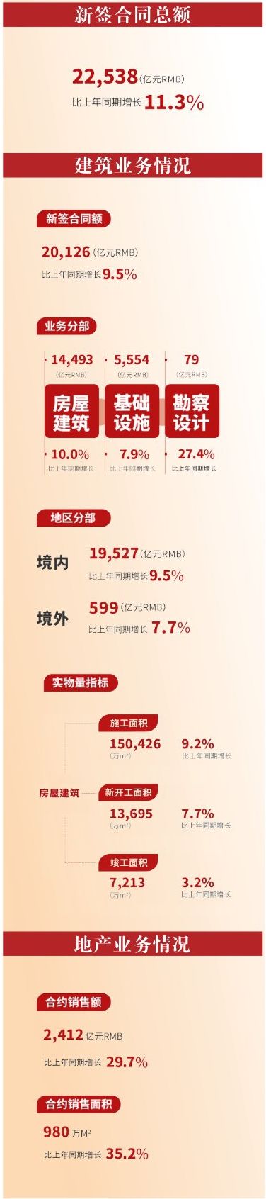 中国建筑2023年1-6月经营情况简报