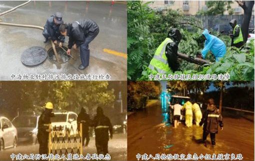 面对暴雨汛情,中建集团坚决筑牢汛期安全防线,全力以赴抗击汛情。