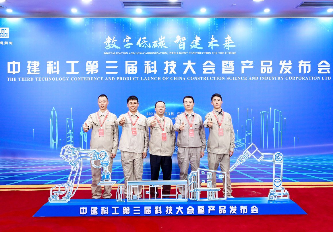 在中建科工第三届科技大会暨产品发布会现场,清一色身着深色西装的参会人员中,5位穿着米黄色工作制服的车间工人分外引人注目。要知道,这场行业盛会可谓群贤毕至,仅中国科学院、工程院院士就来了 6 位;活动主办方中建科工是国务院国资委“科改示范企业”标杆,其旗下参加产品发布的中建钢构是国家级制造业单项冠军企业、全国创建世界一流专业领军示范企业、全国建筑钢结构行业竞争力排名榜首企业。在如此高规格的行业盛会上,成为座上嘉宾的 5 位工人,“来头”定然不小!