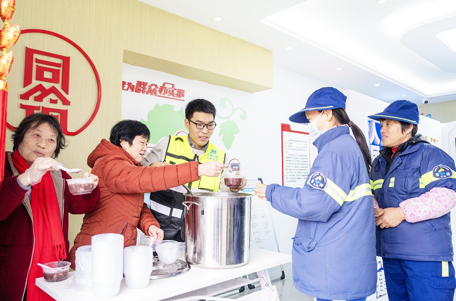 近日,中建八局上海市域铁路嘉闵线3标项目引入所在地马陆镇特色暖心工程,专门开设“小马驿站”特色服务窗口,为户外劳动者提供休息场所,并定期举办各类活动,送一杯热粥、营养早餐等,打造为民服务前台。(张真正)