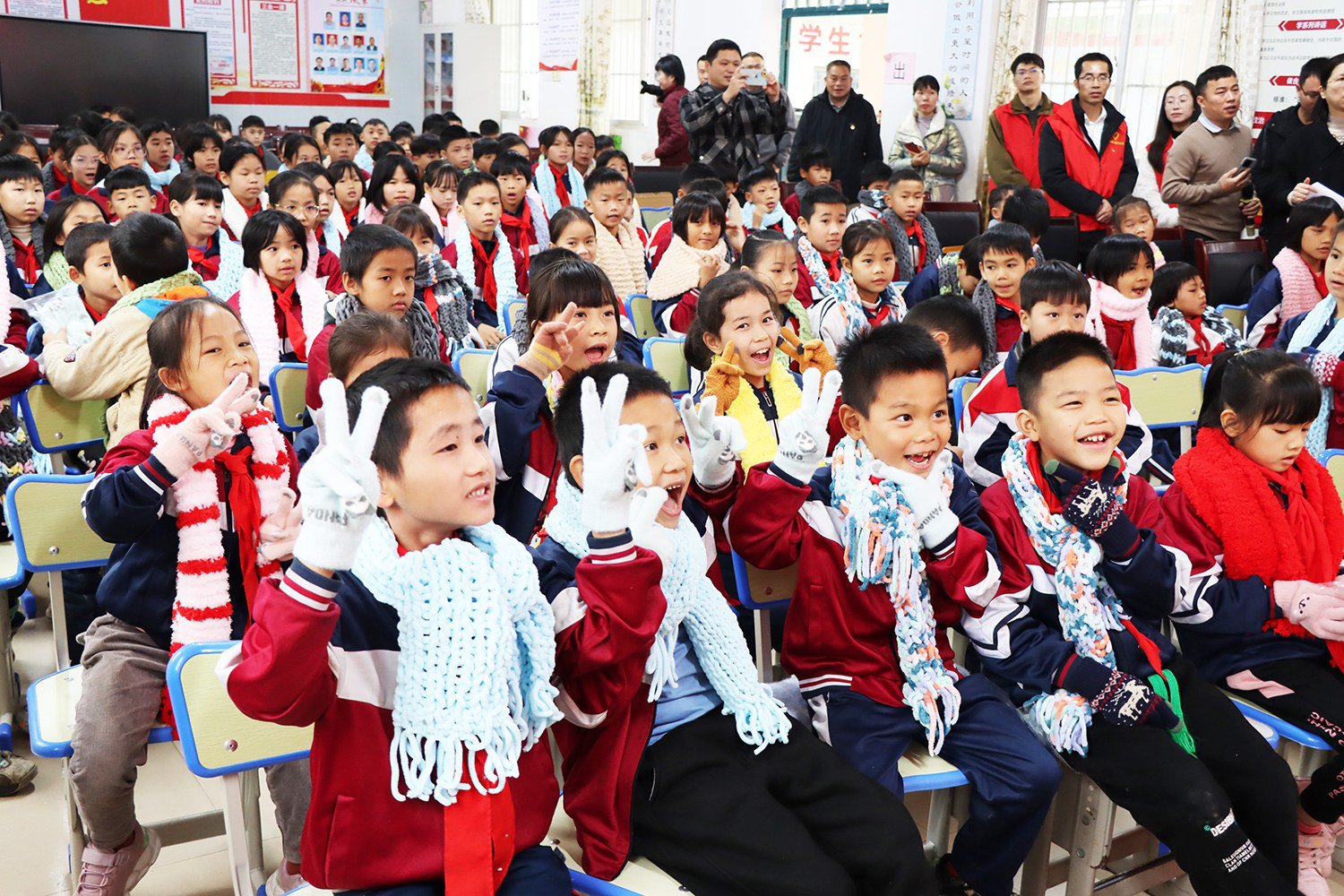 近日,中建七局六公司联合南宁市妇联前往南宁市新福镇飞龙小学开展“暖冬行动”送温暖活动,为留守儿童、少数民族学生送上 300余条亲手编织的围巾以及手套、篮球等物资,让他们感受到冬日的暖心关怀。(黄凯迪、王长远)