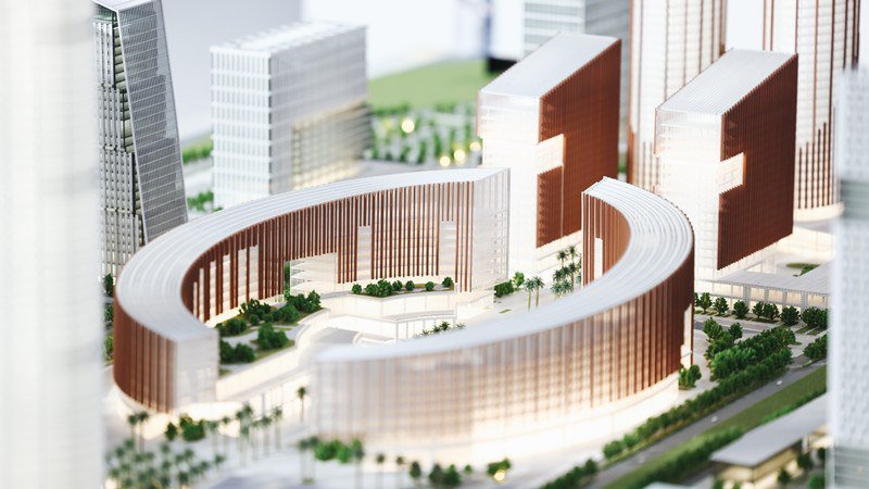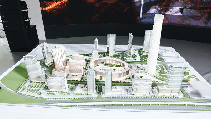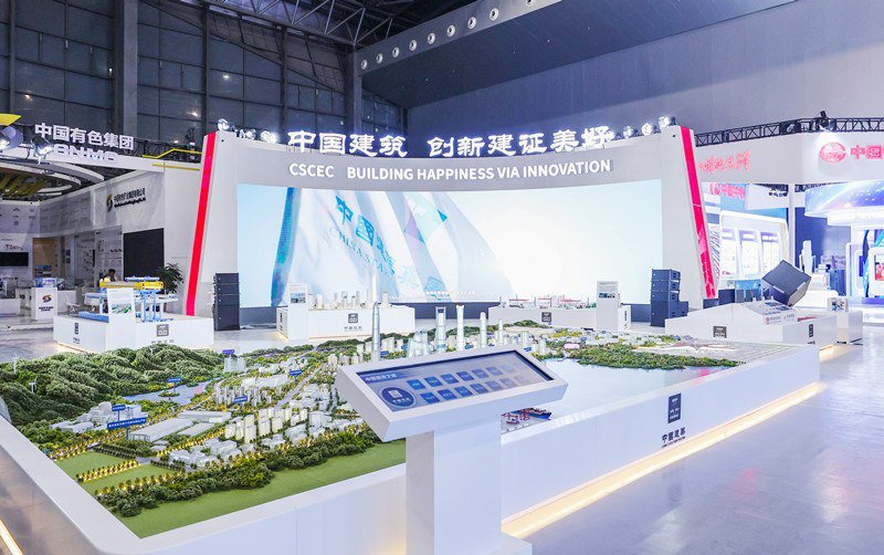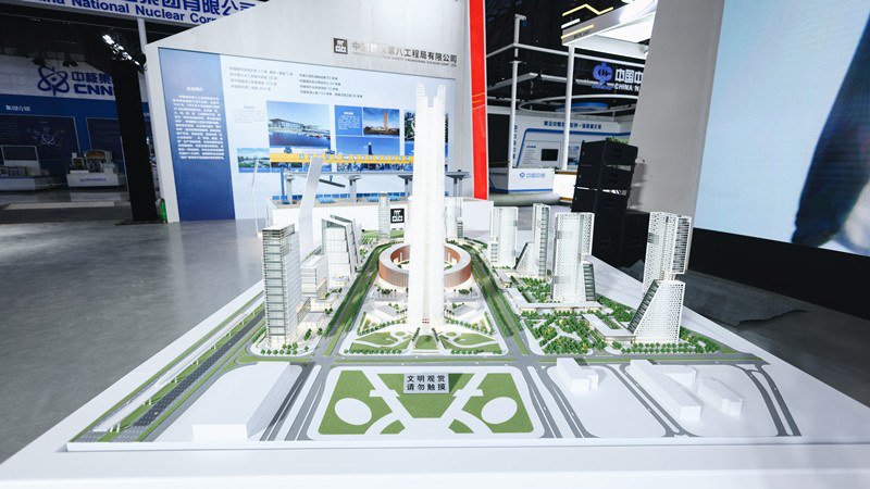 “中国建造之城”沙盘由中国建筑在国内外的标志性工程组成,集中展示了中国建筑“投建管运”全产业链能力,还融合展示了建筑工业化布局、海绵城市、韧性城市、生态城市等建设成就。