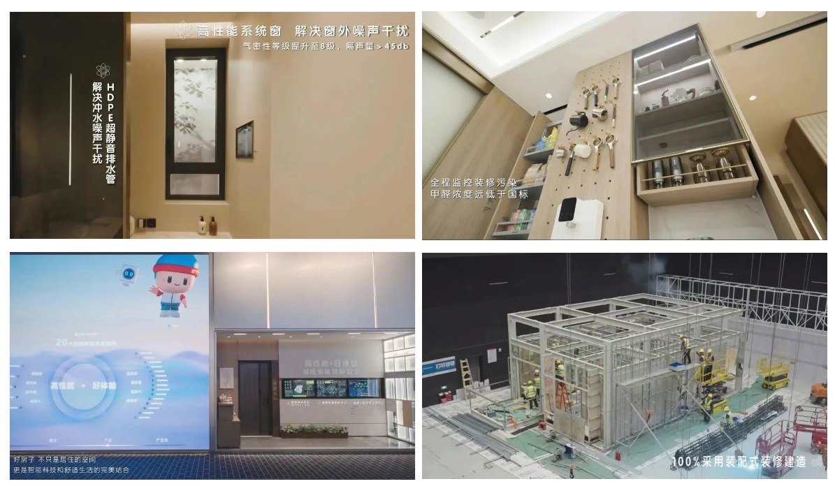 在“高性能”方面,中海通过聚焦硬件和基础性能提升,融合新质生产力,集成多个科技系统,提升房屋的基础性能。以中国建筑科技展上的中海“新建好房子”样板间为例,在安全方面,实现智慧四关、安防、异常报警等功能集成;在舒适方面,实现隔声提升20%,排除渗漏,基本解决返味,污染降低70%;在绿色方面,实现使用能耗降低 20%;在智慧方面,实现核心技术 100% 自主可控。