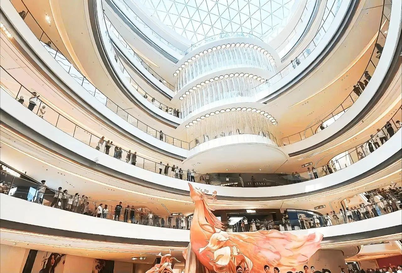 项目总建筑面积35万平方米,建筑设计融合现代都市风格与中原文化元素,外立面采用流线型玻璃幕墙与金属格栅相结合的设计,内部空间设计宽敞明亮、动线流畅。商场共分为地上七层和地下三层,涵盖了超过500家品牌店铺,能满足不同消费者的需求。