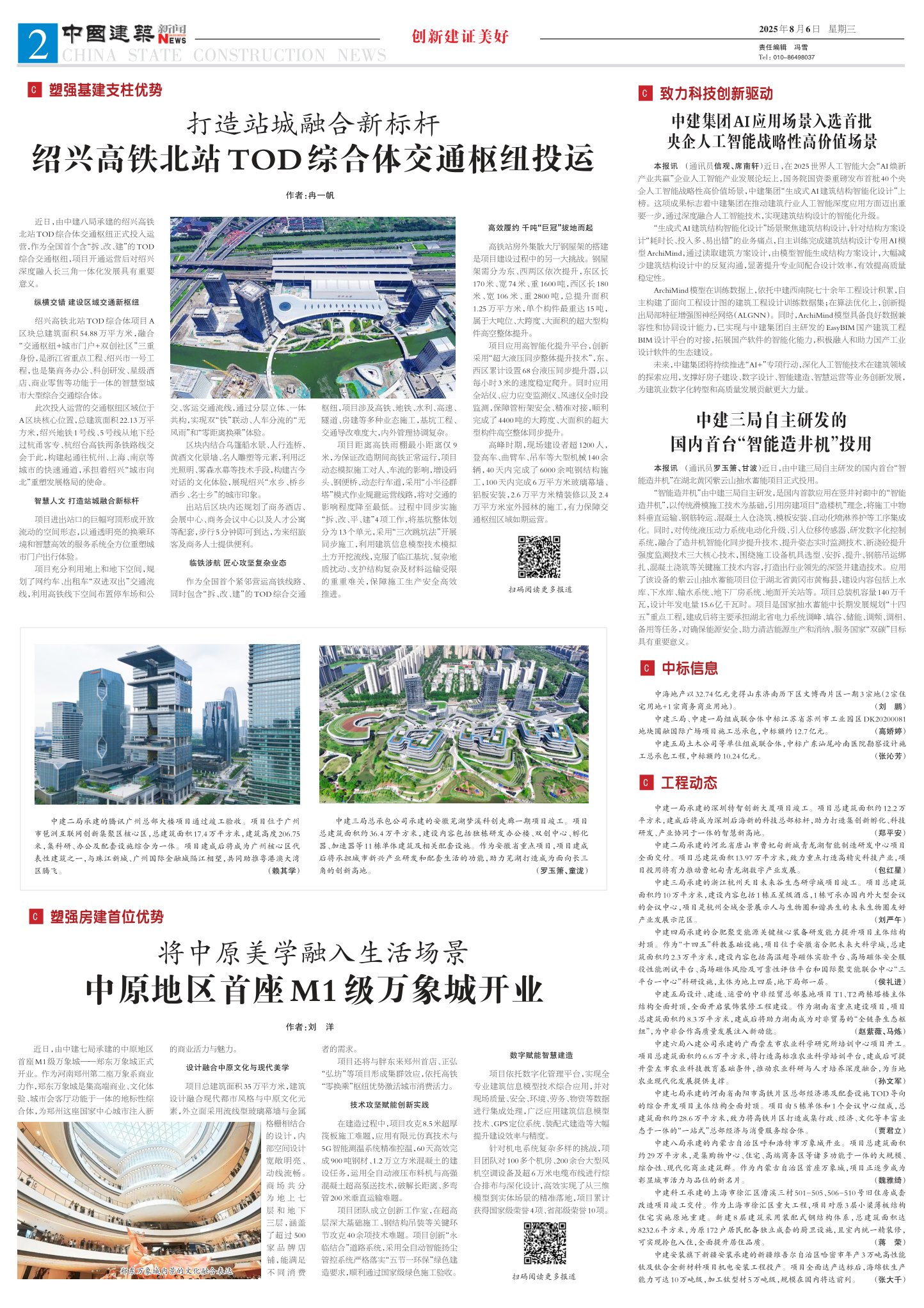 在建造过程中,项目攻克8.5米超厚筏板施工难题,应用有限元仿真技术与5G智能测温系统精准控温,60天高效完成900吨钢材、1.2万立方米混凝土的建设任务,运用全自动液压布料机与高强混凝土超高泵送技术,破解长距离、多弯管200米垂直运输难题。项目团队成立创新工作室,在超高层深大基础施工、钢结构吊装等关键环节攻克40余项技术难题。
