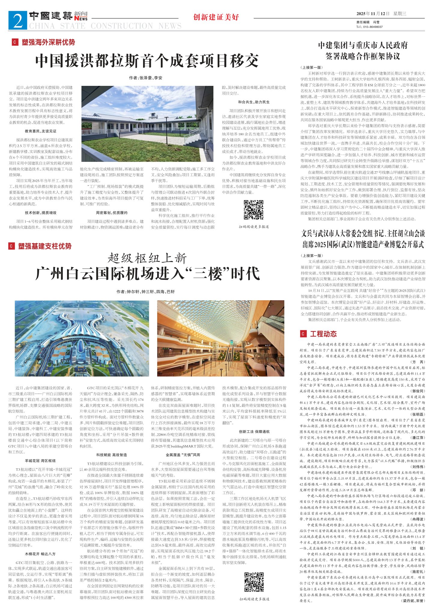广州白云国际机场三期扩建工程,包括中建三局承建,中建二局、中建五局、中建装饰、中建科工、中建安装参建的T3航站楼;中建四局承建的T3航站楼前交通中心综合体项目(以下简称GTC项目);中建八局的承建空管塔台和工作区。