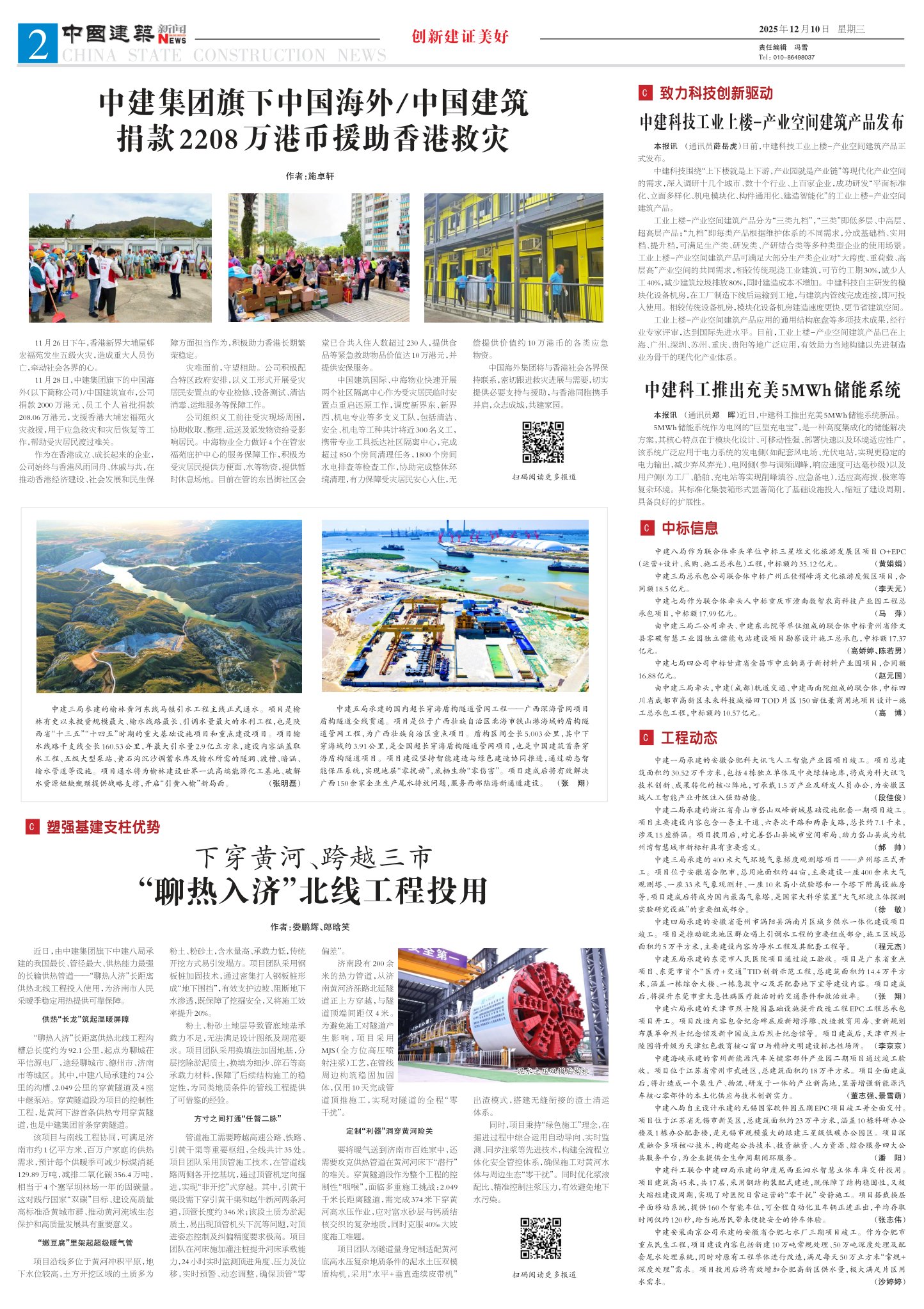 11月26日下午,香港新界大埔屋邨宏福苑发生五级火灾,造成重大人员伤亡,牵动社会各界的心。11月28日,中建集团旗下的中国海外(以下简称公司)/中国建筑宣布,公司捐款2000万港元、员工个人首批捐款208.06万港元,支援香港大埔宏福苑火灾救援,用于应急救灾和灾后恢复等工作,帮助受灾居民渡过难关。作为在香港成立、成长起来的企业,公司始终与香港风雨同舟、休戚与共,在推动香港经济建设、社会发展和民生保障方面担当作为,积极助力香港长期繁荣稳定。