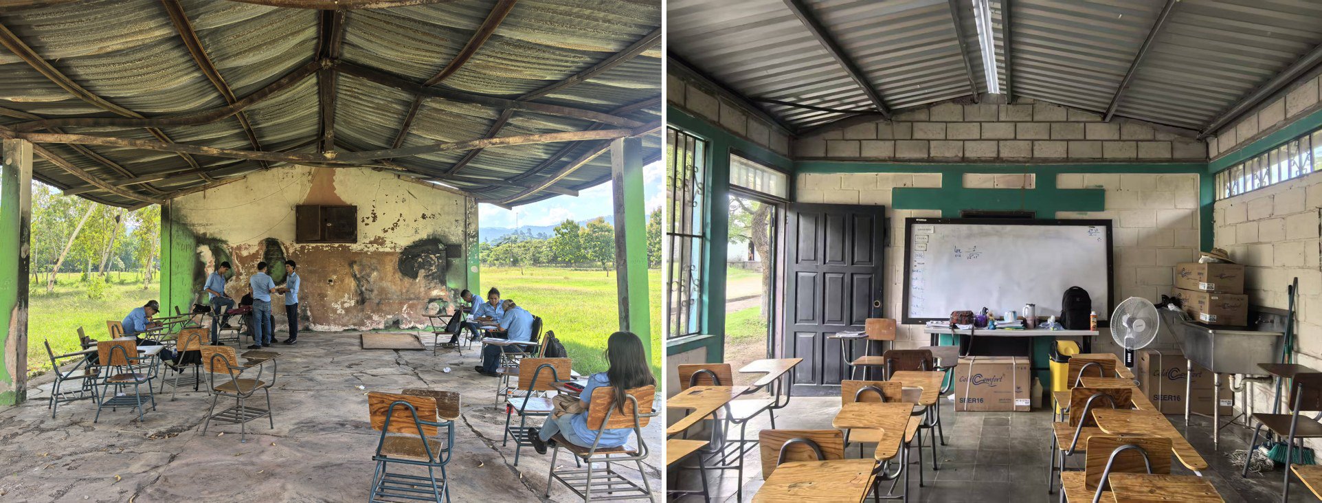 初抵洪都拉斯时,我看到的原来的教室主要由铁皮棚子搭建而成,有的甚至没有围墙。