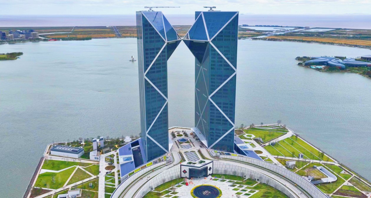 中建二局承建的临港中银西岛金融中心项目竣工。项目位于上海市滴水湖西岛屿,总建筑面积达 28.25万平方米,建筑主体由两栋高 195米的双子塔楼组成,顶部通过锥形体空中连廊衔接,从侧面看,两栋塔楼以独特的“1”字相向而立。项目建成后将成为上海临港现代服务业开放区最重要的产业和区域新地标。(郝帅)