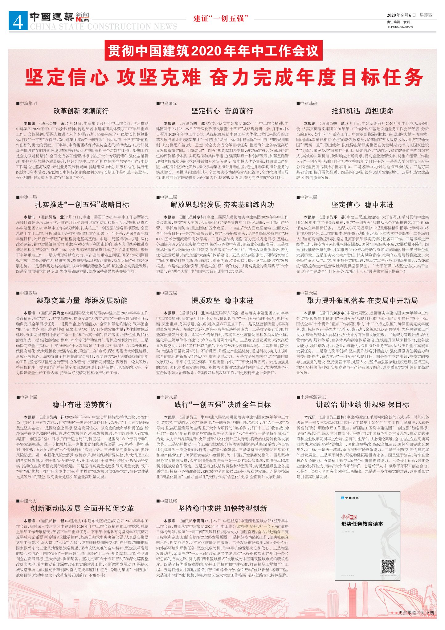 ■中海集团改革创新领潮前行 本报讯(通讯员钟海)7月25日,中海集团召开年中工作会议,学习贯彻中建集团2020年年中工作会议精神,传达部署中建集团具体要求和下半年重点工作。会议强调,要深入推进“六个