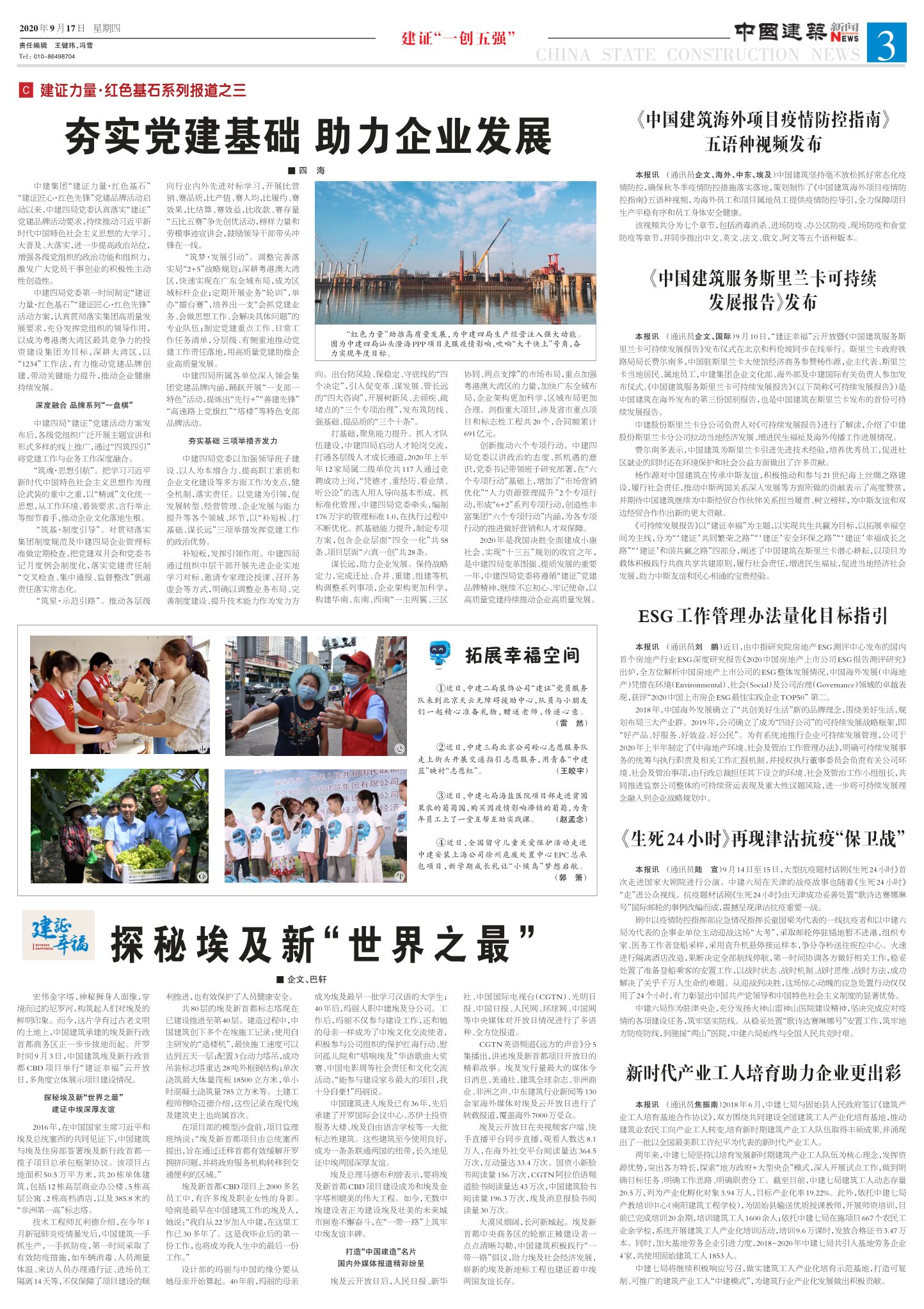 “红色力量”助推高质量发展,为中建四局生产经营注入强大动能。图为中建四局汕头澄海PPP项目克服疫情影响,吹响“大干快上”号角,奋力实现年度目标。中建集团“建证力量·红色基石”“建证匠心·红色先锋”党建