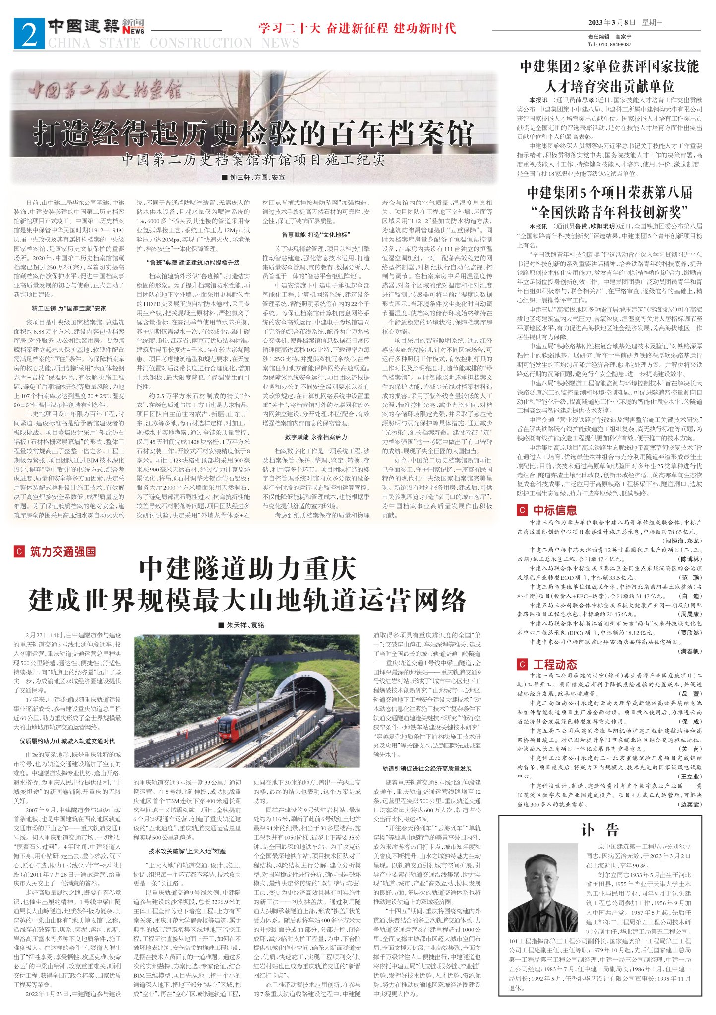 原中国建筑第一工程局局长刘尔立同志,因病医治无效,于2023年3月2日在上海逝世,享年90岁。刘尔立同志1933年5月出生于河北省玉田县,1955年毕业于天津大学土木系工业与民用专业,同年9月于包头建