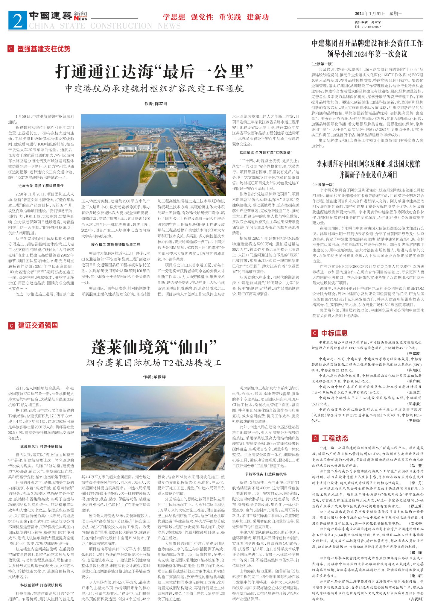 领导小组2024年第一次会议本报讯(通讯员企文)1月25日,中建集团在京召开品牌建设和社会责任工作领导小组2024年第一次会议,深入学习贯彻习近平总书记关于品牌建设的重要指示精神,结合国资委工作部署和企业实际,就进一步做好品牌建