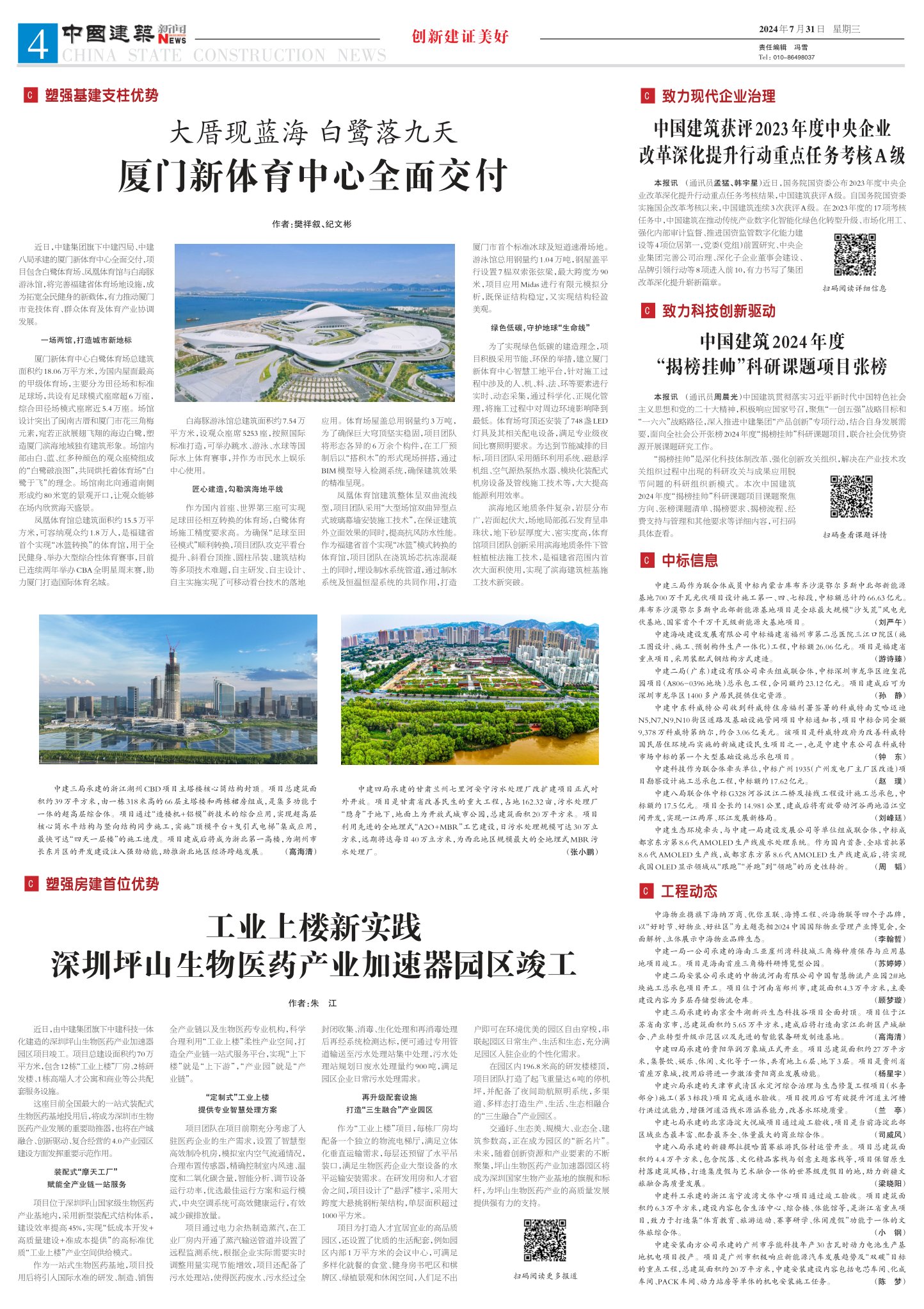 “揭榜挂帅”科研课题项目张榜本报讯(通讯员周晨光)中国建筑贯彻落实习近平新时代中国特色社会主义思想和党的二十大精神,积极响应国家号召,聚焦“一创五强”战略目标和“一六六”战略路径,深入推进中建集团“产品创新”专项行动,结合自身发